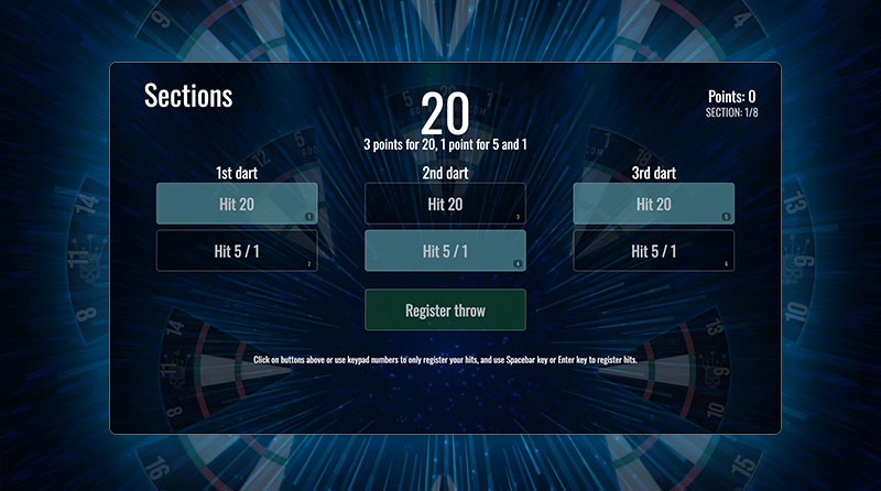 The game Sections is one of a series of new games intended to be used especially by novice/beginner darts players. GoDartsPro is working on a new training tool where there will games grouped into different training plans, for different levels of players. We felt we needed a few new games that are especially good to use as warming up routines to start the training session for the day in best possible way. Sections is the first game out of these new games planned.